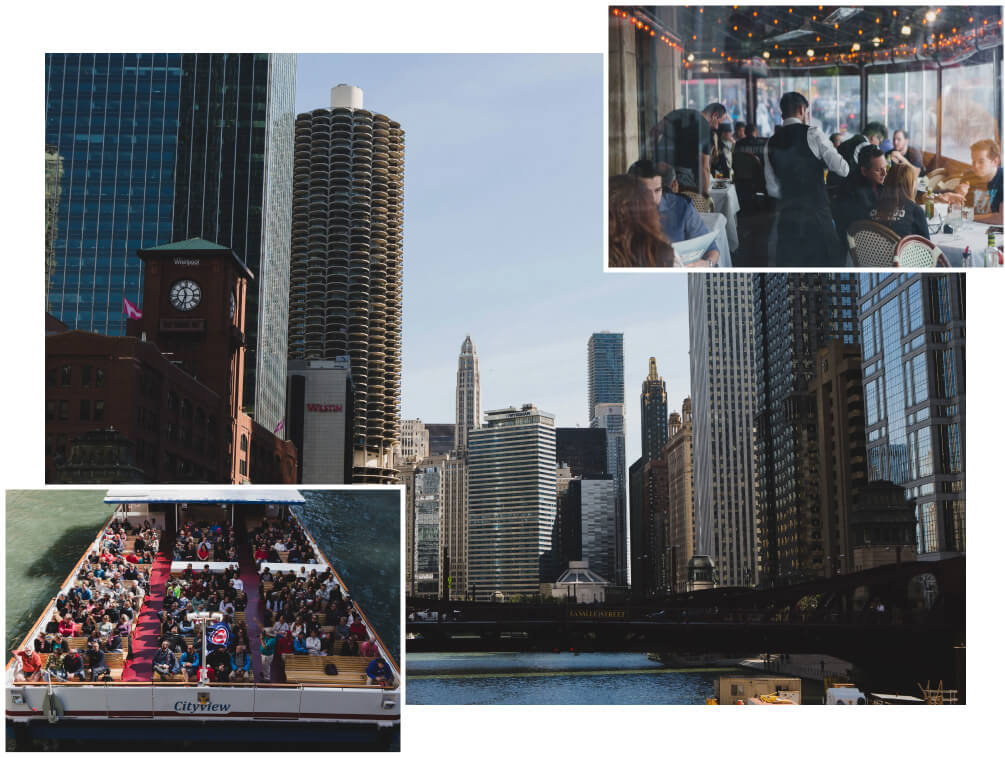 Some of Chicago’s oldest buildings still stand here as symbolic reminders of the city’s rebirth after the Great Chicago Fire in 1871. The bridges and riverwalk offer incredible perspectives of these soaring, iconic structures, so be sure to look up for a moment when traversing from shop to shop.
